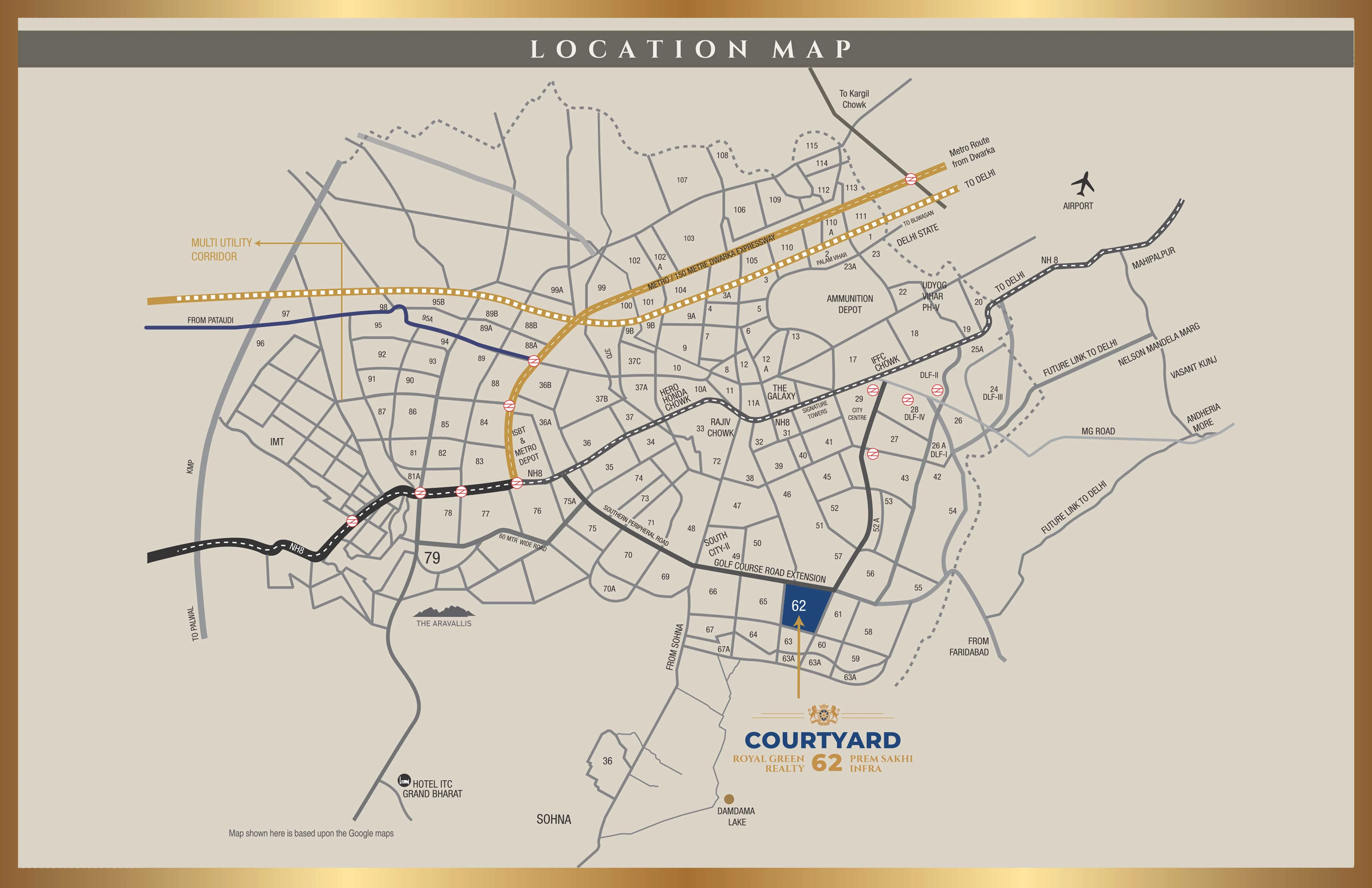- well connected to Golf Course Road, NH-8 road, Sohna road