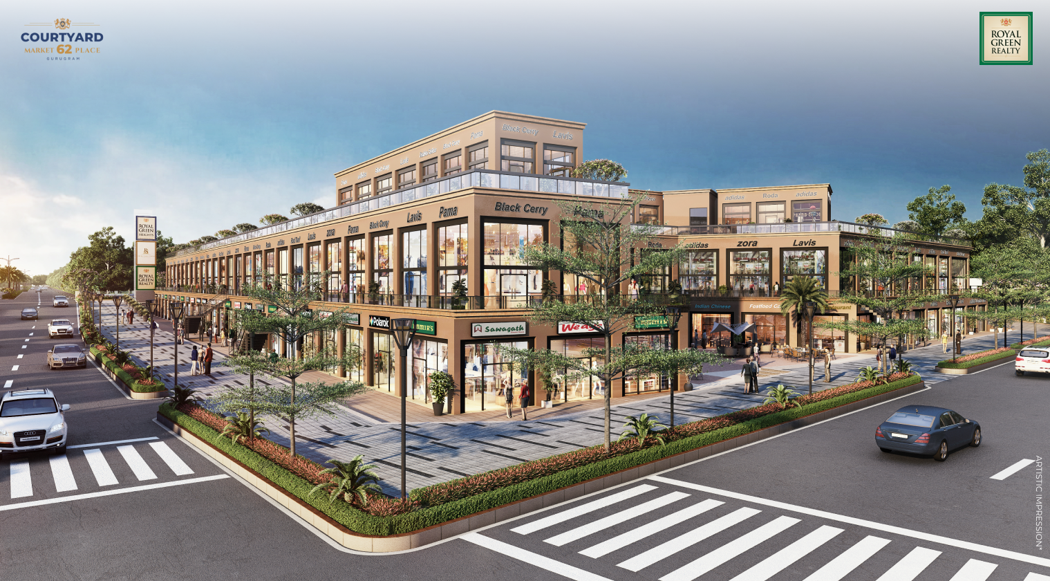 landscape with premium commercial spaces designed for visibility, accessibility, and